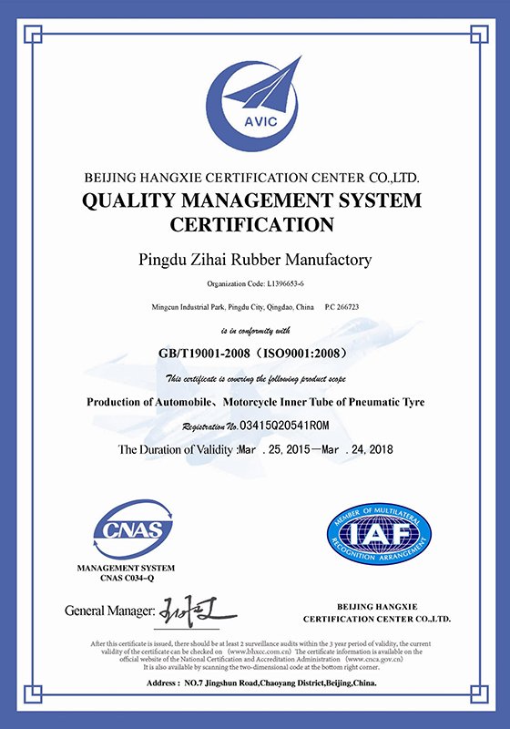 Pingdu Zihai Rubber Manufactory was founded in 1995, located in Qingdao, a famous seaside tourism attraction city in China, with convenient transportation and flourishing information.Now our company has registered the capital of 50 million yuan, total assets of 120 million yuan, covers an area of more than 30,000 square meters, and employs more than 300 people. It is a comprehensive enterprise that manufacture and export OTR tyres, agricultural tires, special industrial tyres,forklift tires truck tyres, full range of inner tubes and flaps. By October 2020, after nearly 30 years’ development and expansion, in order to meet the increasing customer demand, the new inner tube factory, Ningxia Ningjie Zihai Rubber Co., Ltd was built in Ningxia, with an average daily production capacity of 10,000 + inner tubes. Our factory has passed ISO9001 quality system certification, ISO14001 environmental protection system certification, OHSAS18001 health management system certification,China Compulsory Certification, US DOT certification, inner tube safety certification and other domestic and foreign related certifications, and also established a complete inspection system. Now we’ve become the vice president unit of Pingdu Rubber Association and national AAA good standardizing practice enterprise. Since the foundation of our company, we have always insisted the principle of “Quality First, Customer Supreme” to run our factory , and the management policy of “Mutual Benefit, Honesty & Credibility”. Our company has established a stable and effective marketing network and service system at home and abroad. The products have been sold to 29 provinces, cities and autonomous regions in China, and exported to more than 30 countries and regions. With its excellent quality and complete after-sales service system, we have gained high trust from domestic and foreign customers and obtained a outstanding reputation in the international markets.Sincerely welcome every customer from all over the world to our company to discuss the cooperation and create the brilliance!